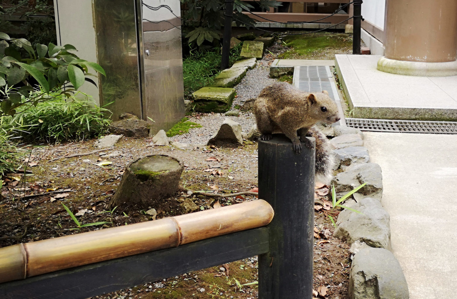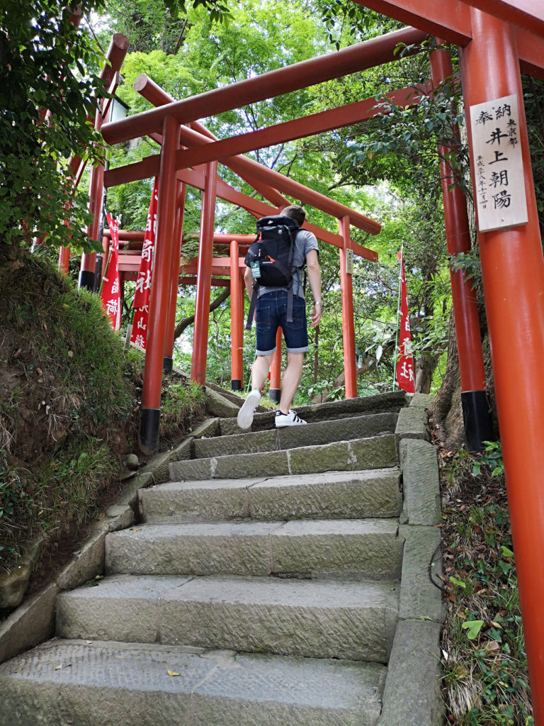 Ce que nous en retiendrons : l’immense torii à son entrée, la vue sur la ville du haut de la soixantaine de marches (paraissant bien plus !) amenant au bâtiment principal et notre rencontre avec un écureuil, la nature étant très présente dans le sanctuaire.