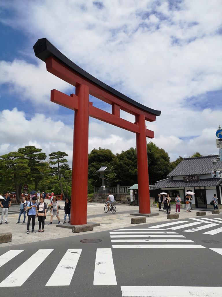 Retour à la gare de Kamakura pour nous diriger vers le sanctuaire shinto de la ville, Tsurugaoka Hachimangu. Mais d’abord faisons une halte à la boutique Ghibli située aux abords de la gare, et plongeons quelques minutes dans le monde d’Hayao Miyazaki. C’est avec des étoiles plein les yeux que nous reprenons notre marche vers le sanctuaire. Il faut compter un gros quart d’heure à pied. Les kilomètres s’enchainant et la fatigue n’aidant pas, nous devons rusher la visite du Hachimangu car il est gi-gan-tes-que.