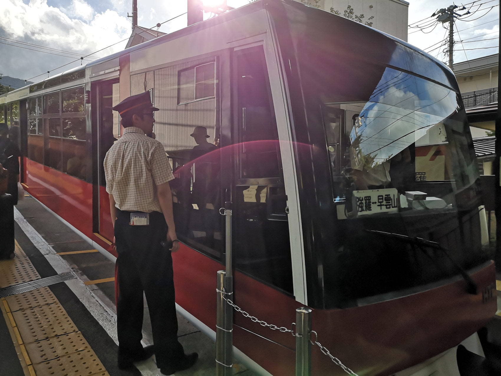 Depuis Odawara, le train fait une ascension dans la montagne escarpée où la végétation est luxuriante, notamment les hortensias. Nous terminons notre route en prenant le funiculaire qui nous amène au plus près de notre ryokan. Le trajet est tellement différent de ce que l’on a pu expérimenter jusque là, un vrai dépaysement.
