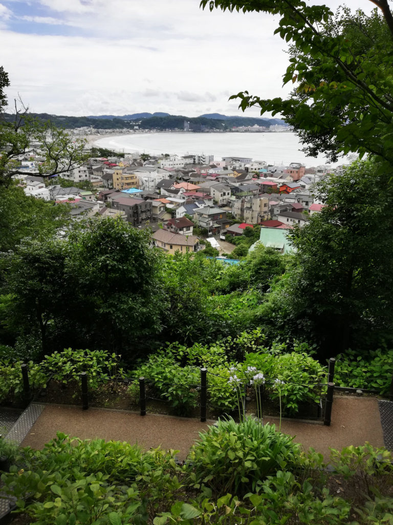 Un petit quart d’heure de train plus tard, nous atteignons la station Hase située à quelques minutes à pied de Hase Dera. Il s’agit d’un temple bouddhiste de la secte Jōdo qui a la particularité d’être situé sur les hauteurs de Kamakura.