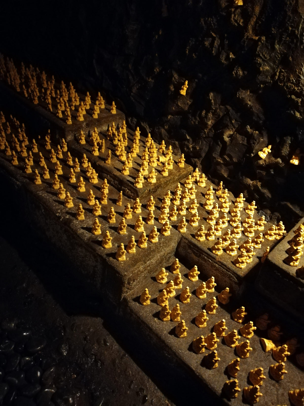 Du haut de ses 9 mètres, elle est le point d’orgue de Hase Dera. En rebroussant chemin vers l’entrée, nous nous arrêtons quelques minutes dans la grotte dédiée à la déesse Benten-Kutsu dans laquelle nous découvrons des représentations taillées à même la pierre ainsi que des centaines de petites statuettes laissées par les visiteurs. Mystique et surprenant.