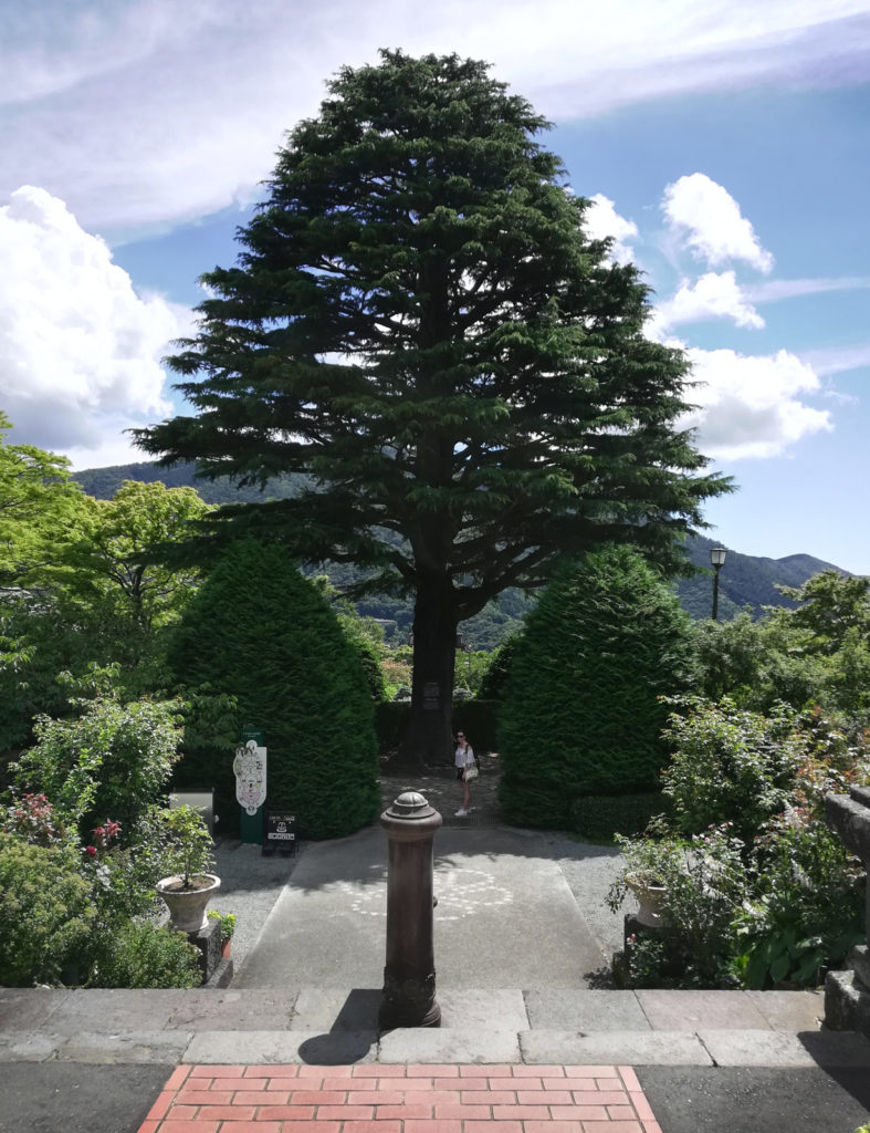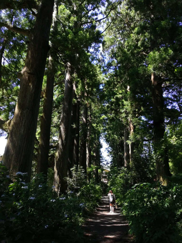 De retour sur la terre ferme, nous poursuivons notre marche sur les rives du lac Ashi afin de rejoindre le sanctuaire Hakone jinja. Nous passons tout d’abord par le checkpoint Hakone-sekisho. Ce poste de contrôle marquait une étape de l’ancienne route de Tōkaidō entre Kyoto et Edo (ancien nom de Tokyo) entre les XVIIe et XIXe siècle.