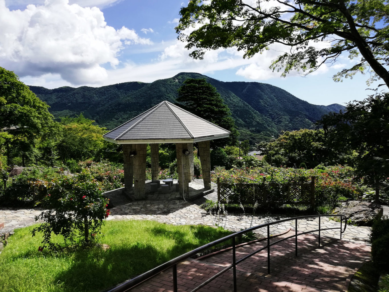 Il est 10h, nous partons pour notre première destination du jour : le Parc Gora. Situé à quelques centaines de mètres de là, nous rejoignons ce parc situé à flanc du mont Sounzan. Nous y parvenons par sa partie haute. Le lieu est composé de plusieurs niveaux successifs sur un peu plus de 3 hectares.