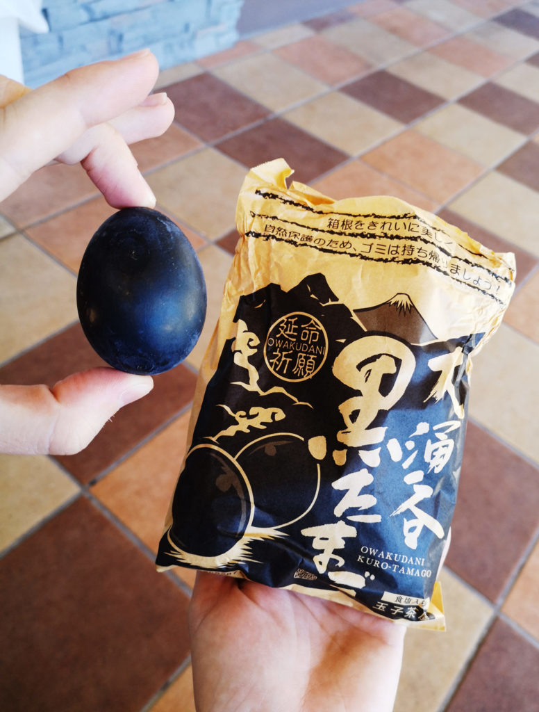 Nous nous procurons des kuro tamago, des œufs cuits dans ces sources. Ils ont la particularité d’avoir leur coquille noircie par le soufre qu’elles contiennent. Nous apprenons même que manger ces œufs permettrait de vivre 7 années supplémentaires.